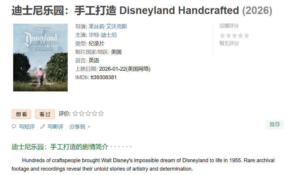 6、❤️【最新迪士尼建造发展纪录片】迪士尼乐园:手工打造【2026】4K/2160P [中文字幕] [9.2G]免费观看全集高清网盘资源
