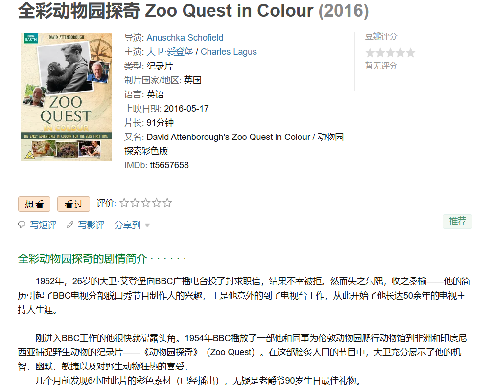 6、❤️【BBC野生动物题材纪录片神作】全彩动物园探奇【2016】BD1080P [中文字幕] [5.5G]免费观看全集高清网盘资源