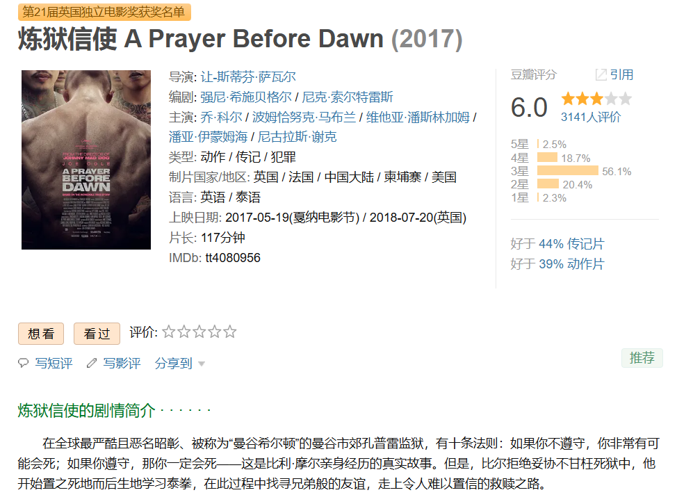 6、❤️【泰国监狱黑拳题材动作爽片】炼狱信使 A Prayer Before Dawn【2017】BD1080P [中文字幕] [6G]免费观看全集高清网盘资源