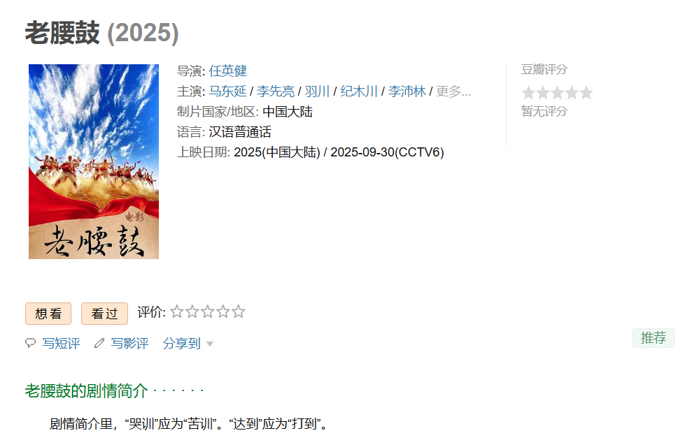 1、本贴标题:❤️【陕西非遗文化题材电影】老腰鼓 (CCTV6版)【2025】HDTV1080P [国语中字] [5G]