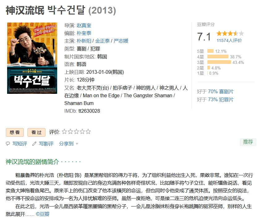 6、❤️【韩式爆笑喜剧片】神汉流氓 박수건달【2013】BD1080P [中文字幕] [2.7G]免费观看全集高清网盘资源