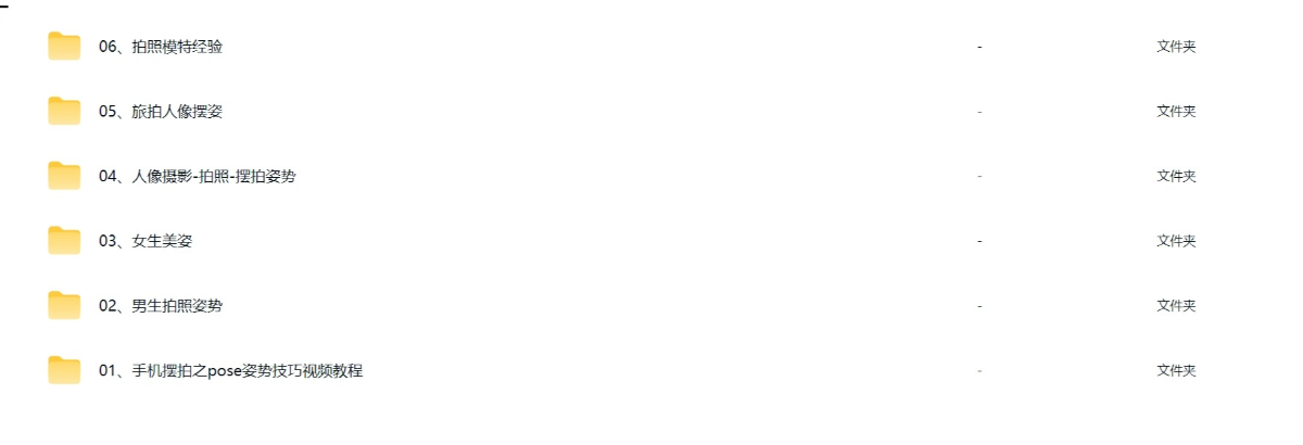 6、刚买的摄影拍照姿势全套资料!拍照姿势大全,含图片、教程、案例等,拍照姿势大全动作技巧相关内容免费观看全集高清网盘资源